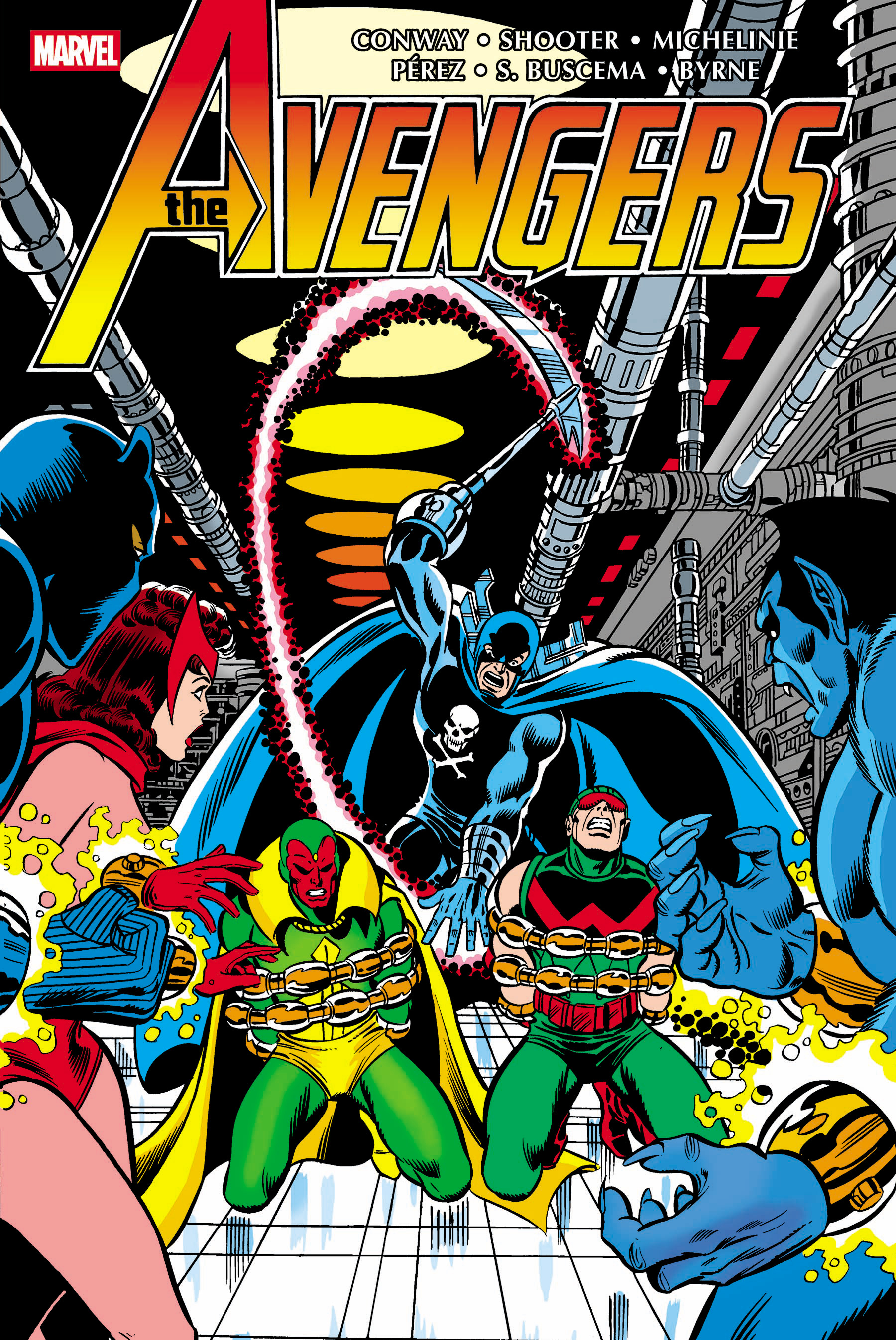 Collecting a three-year run of AVENGERS at its very best, with dynamite work from an awesome assemblage of legendary creators! First, Gerry Conway joins George Pérez for a new era for Earth's Mightiest Heroes. When Wonder Man returns, the team's internal drama reaches a crescendo all while the Avengers wage war against Doctor Doom. Jim Shooter takes over as writer with John Byrne taking turns with Pérez on art. They begin a series of classic encounters staged on a massive scale, taking on Ultron, the Lethal Legion and the epic threat of Korvac! Then, David Michelinie changeth the order again with a trip to Wundagore Mountain. Plus: Jim Starlin's cosmos-altering Thanos War, a solo flight for the Falcon and the tragic tale of Arsenal! Collecting AVENGERS (1963) #150-188 and ANNUAL (1967) #6-9, SUPER-VILLAIN TEAM-UP #9, MARVEL TWO-IN-ONE ANNUAL (1976) #2, MARVEL PREMIERE (1972) #35-37 and #49, WHAT IF? (1977) #3 and #9 and material from MARVEL TALES (1966) #100 and MARVEL TREASURY EDITION #13.