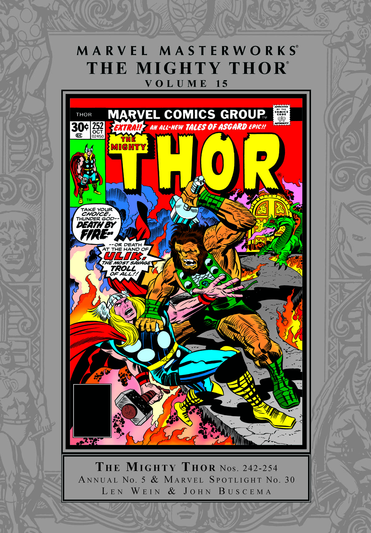 Writer Len Wein lifts Mjolnir aloft and rallies forth the armies of Asgard! When the Time-Twisters seek to destroy Earth, Thor embarks on an adventure with Zarrko the Tomorrow Man. It's a battle through time (with dinosaurs!) that will impress you to the end! Then, Thor fights the Firelord in the jungles of Latin America - and only Jane Foster can save him! The Warriors Three ramble off on a solo adventure, while Thor returns to Asgard to face the one and only Mangog! Their battle will rage across the Fabled Realm, taking Thor to Hel in a quest to save Odin! Plus: the return of "Tales of Asgard," Thor vs. Ulik the Troll and a giant-sized epic featuring Hercules! Collecting THOR (1966) #242-254 and ANNUAL #5, MARVEL SPOTLIGHT (1971) #30, and material from MARVEL TREASURY EDITION #10.