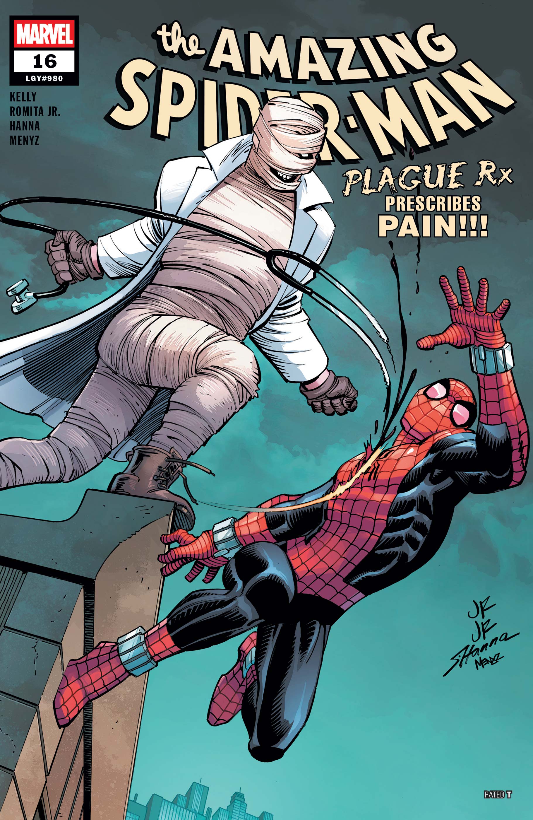 THE RESOLUTE SPIDER-SLAYER! Part of being Spider-Man is facing horrific scientifically wondrous SPIDER-SLAYERS! This new Spider-Slayer is particularly dangerous and endangers not only Spider-Man but the new teen hero KINTSUGI! Aunt May drops some wisdom that you won't forget anytime soon!