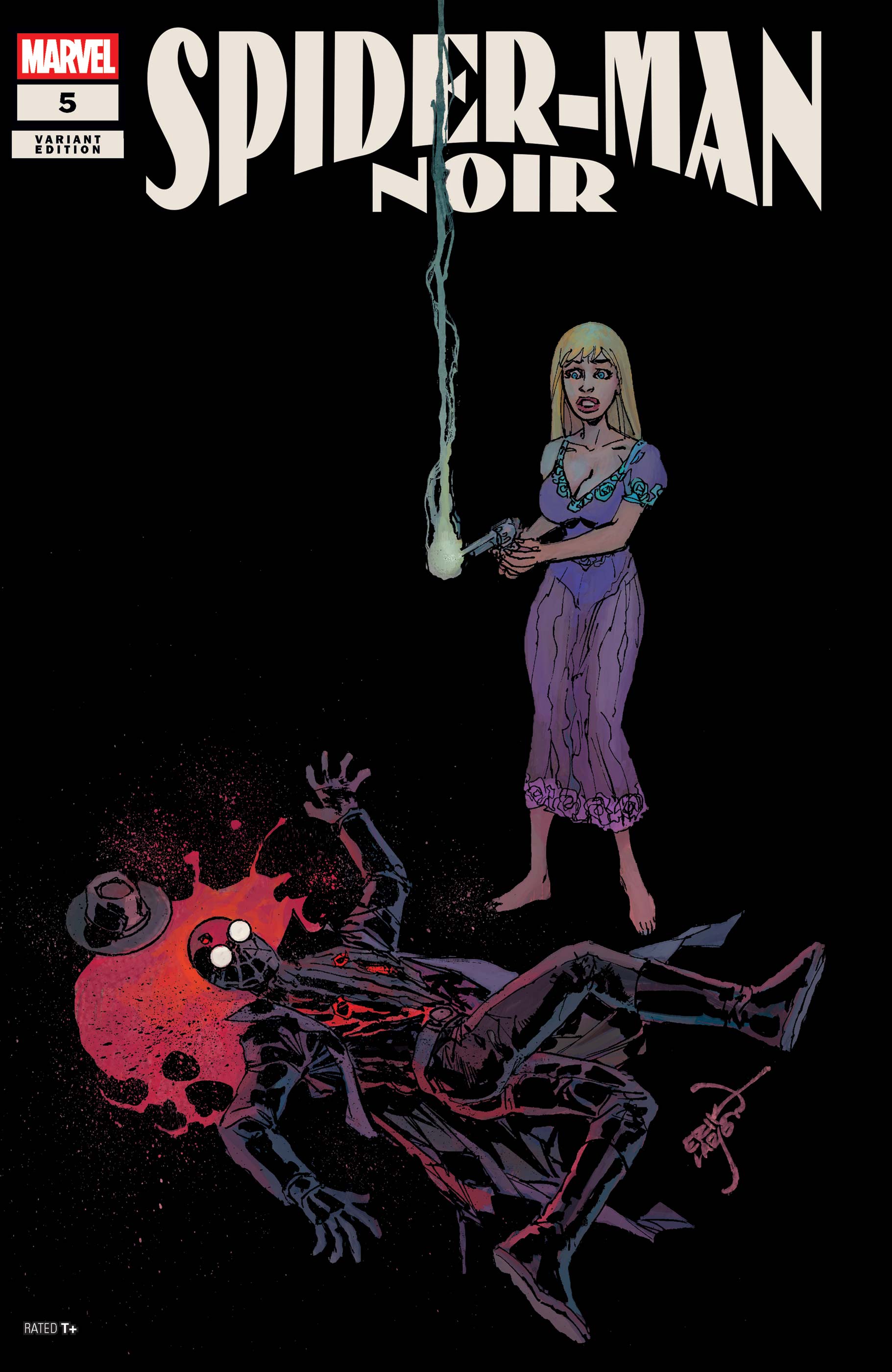 THE DARK MIRROR IS SHATTERED! Peter Parker declared he would be Spider-Man no more! But then who is running around in his suit, doling out lethal justice?! It's all connected as Erik Larsen and Andrea Broccardo tie up their epic shadow-soaked saga!